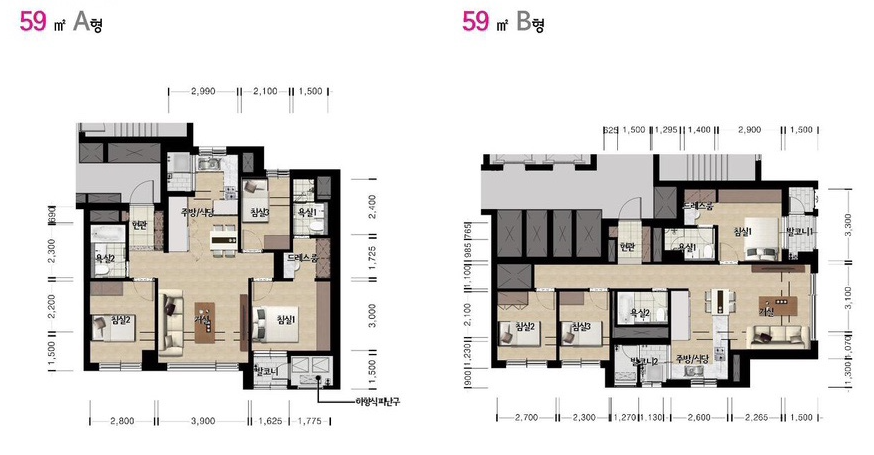 59㎡ A타입 495세대 / B타입 54세대