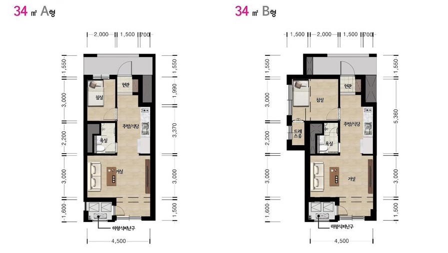 34㎡ A타입 202세대 / B타입 35세대