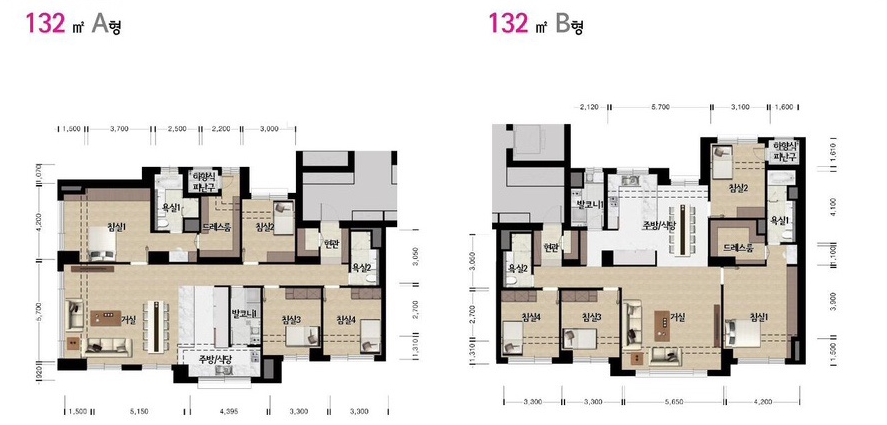 132㎡ A타입 125세대 / B타입 53세대