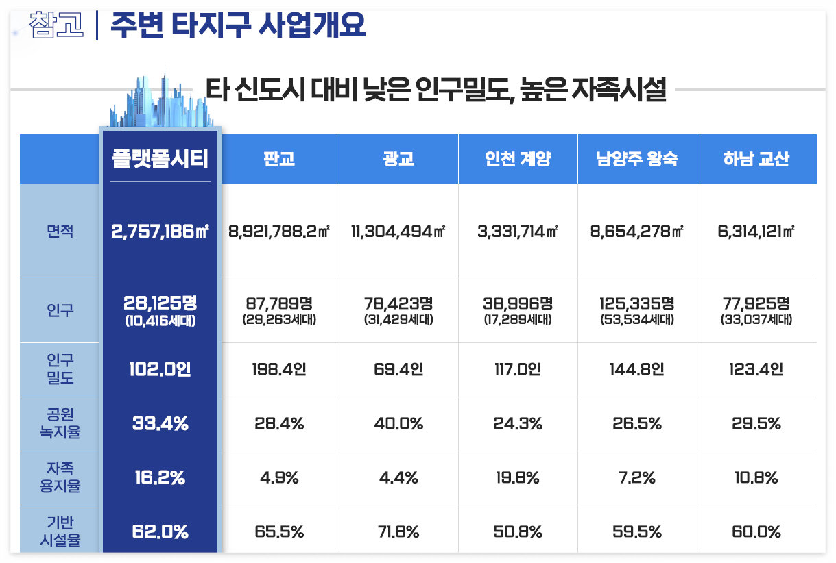 경기도 용인시 플랫폼시티는 경기주택도시공사와 용인도시공사가 약 83만평에 달하는 대규모 도시개발을 통해 조성하며 주거와 도시기반 시설을 통해 계획인구 약 3만명을 수용하며, 산업과 상업시설 조성을 통해 판교테크노밸리보다 약 4배가 더 큰 수도권 최대규모의 자족도시로 조성할 예정입니다.
