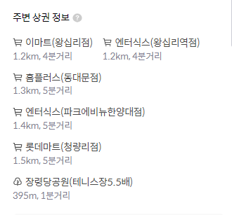 청계리버뷰자이의 상권 인프라는 매우 좋아 보입니다. 단지에서 2km 이내 차로 5분 거리로 이마트, 엔터식스, 홈플러스 롯데마트 등 주요 쇼핑몰이 입점하고 있으며 종합병원 역시 삼육병원, 서울시립병원, 서울 성심병원이 인접해 있어 편리한 생활을 누릴 수 있을 것으로 보입니다.