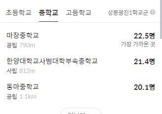 청계리버뷰파크단지의 초등학교 배정은 750m 거리의 혁신초등학교인 용답초등학교입니다. 중학교와 고등학교는 성동광진 1 학군으로 마장중학교, 한양사범중학교 동마중학교가 있으며, 고등학교로는 무학여고, 도선고, 성수고등학교가 있어 준수한 학군으로 유지하고 있습니다. 다만 한 가지 학원가가 조금 부족해 보이는 점은 아쉬운 대목입니다.