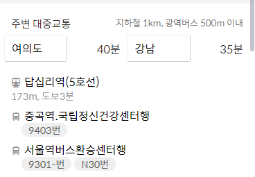 또한 2호선 신답역 역시 350M 내외로 도보로 약 6분 정도 거리에 위치하고 있어 편리하게 이용을 할 수 있을 것으로 보입니다. 답십리역 기준으로 강남은 35분, 여의도 40분, 을지로는 25분 정도가 소요가 됩니다.