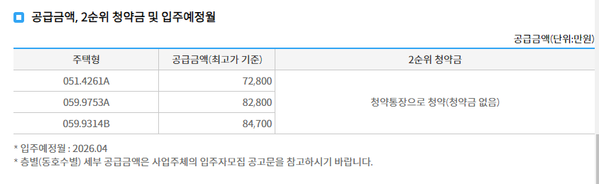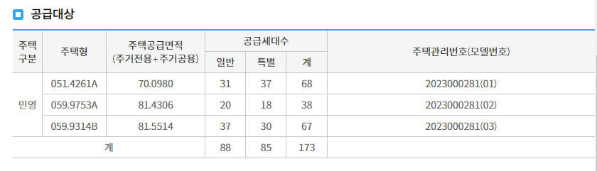 금번 공급물량은 전용 51, 59A, 59B 이렇게 3가지 타입 173세대만을 분양하게 되어 조금 아쉬운 감이 있습니다. 적은 물량만큼 치열한 경쟁이 예상됩니다.